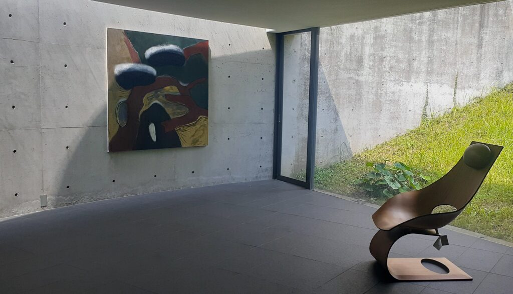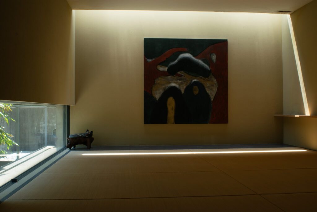 安藤忠雄氏の設計による力強い空間の中で、コンクリート打ち放しの壁面と絵画のコントラストが、自然光の演出によって時間と共に移ろって行きます。